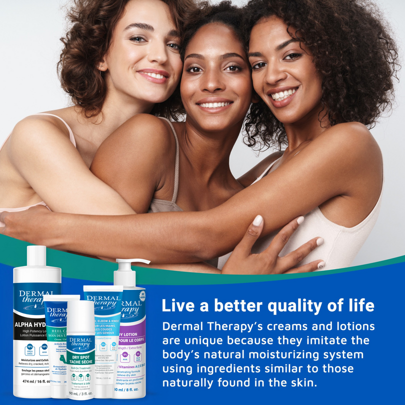 Our unique blend of deep-penetrating urea and naturally exfoliating Alpha Hydroxy Acids that actively soothe painful skin and restore its natural moisture barrier.
